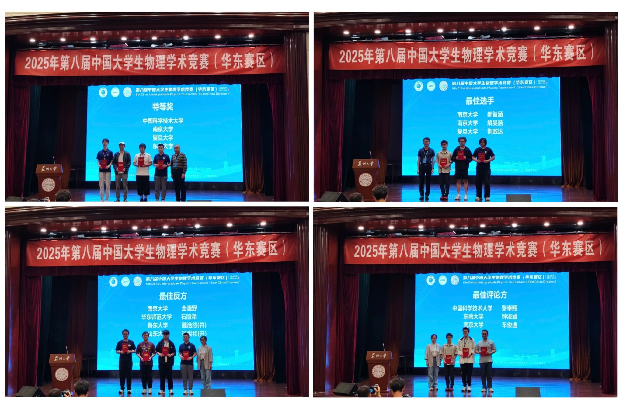 With thorough preparations by the organizers, this year's CUPT East China competition upheld its tradition and significantly enhanced academic exchanges among participating teachers and students. During the competition, NJU team demonstrated sincere collaboration, upholding NJU's tradition of "emphasizing and advancing physics", while engaging in substantive academic exchanges with peers from other institutions.