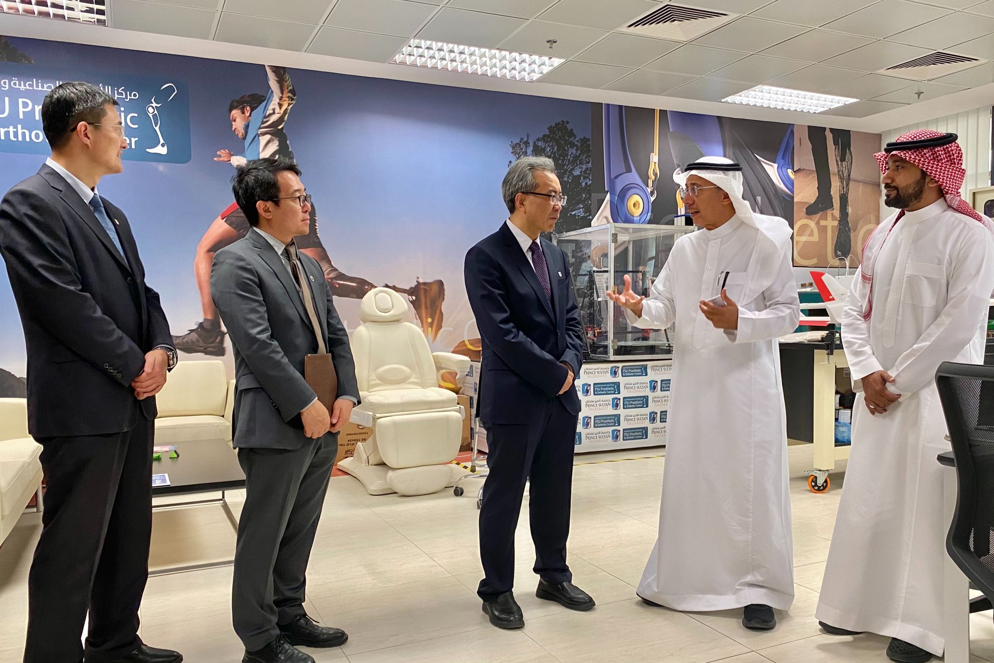 On the morning of May 3, Tan Zhemin and his delegation visited King Saud University, the oldest and largest comprehensive university in Saudi Arabia. Tan introduced NJU's history, preponderant disciplines, and recent achievements in international cooperative education. He emphasized that as China and Saudi Arabia further deepen their comprehensive strategic partnership, NJU places great importance on international cooperation under the "Belt and Road" initiative. He suggested that both sides could sign a framework cooperation agreement to promote practical collaboration and contribute significantly to technological innovation and economic development in both countries. Abdullah Al-Salman, President of King Saud University, warmly welcomed the delegation and expressed hope for establishing a friendly partnership with NJU to cultivate high-level talents with an international perspective for both countries. Nasser Aldaghri, Vice President of King Saud University, and Mezyad Alterkawi, Director of the International Office, participated in the discussions and exchange activities.