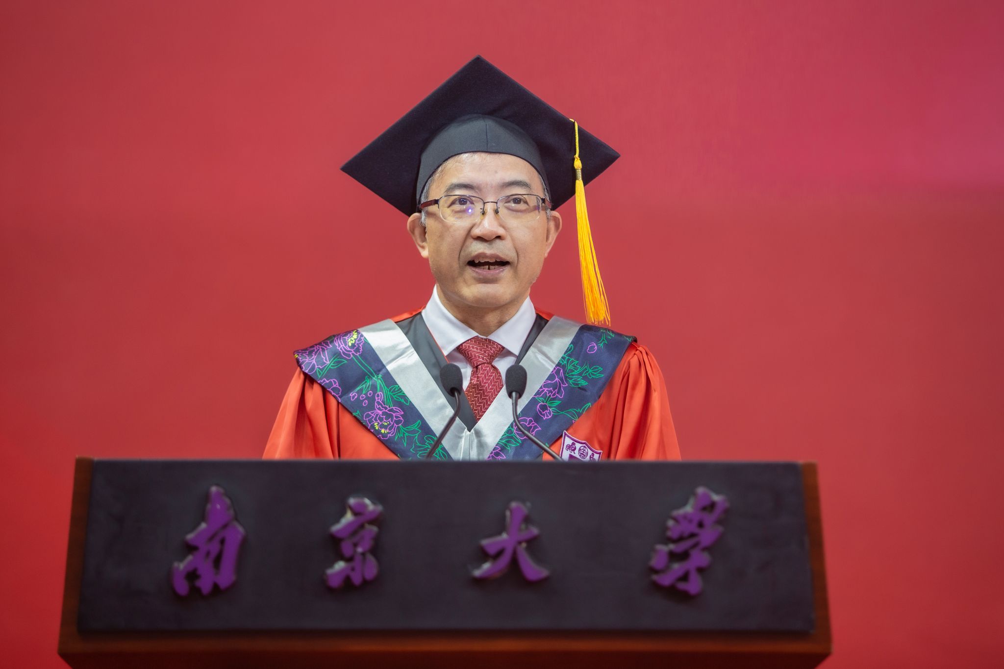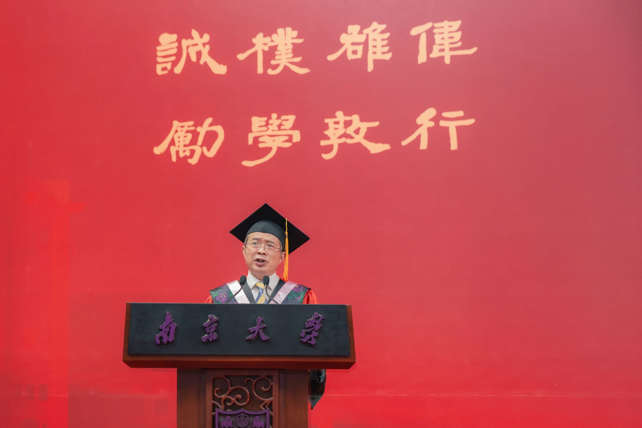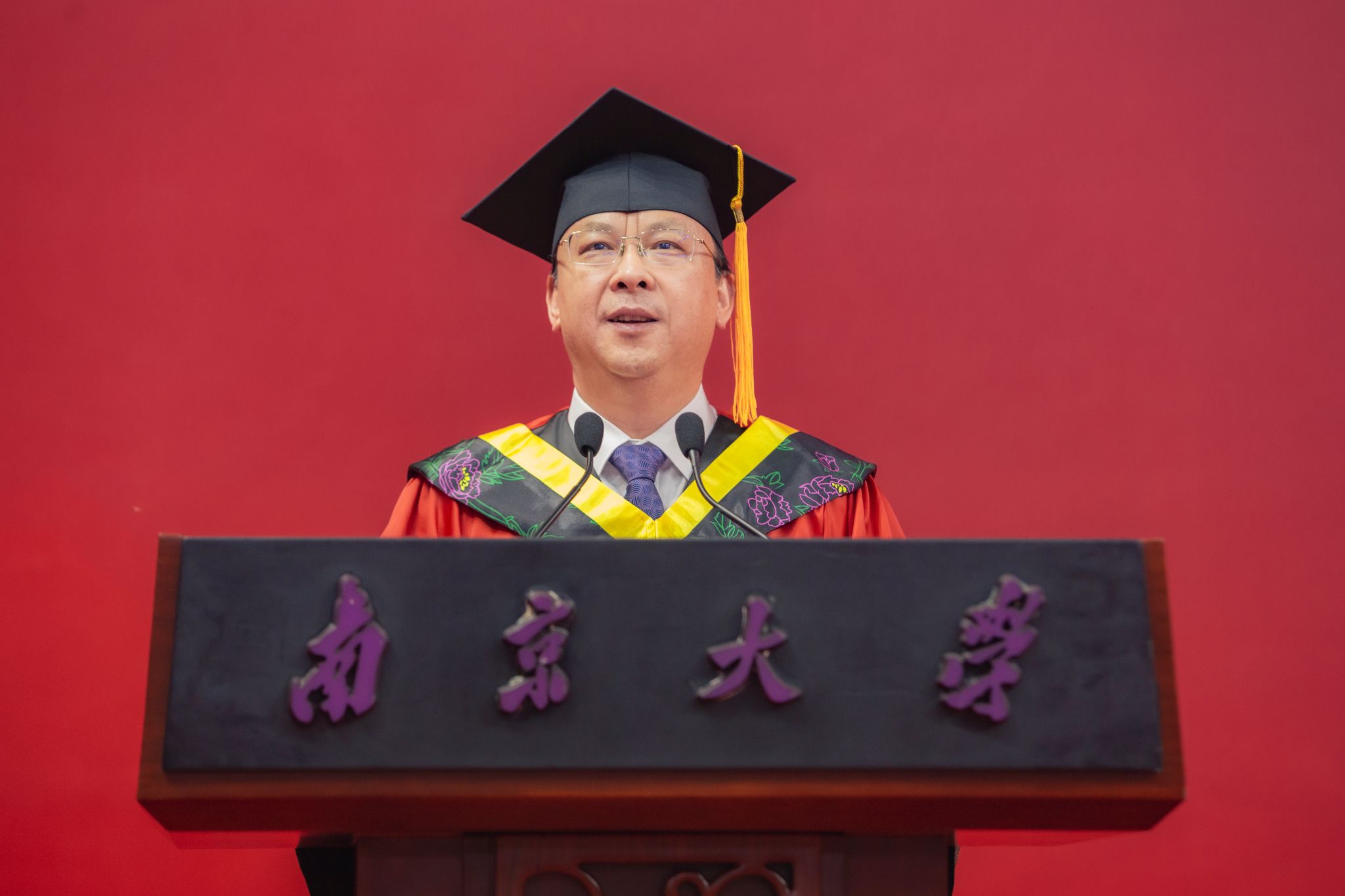 On June 21, the 2023 NJU Graduation Ceremony for Postgraduates was held at the Fang Zhaozhou Gymnasium of the Xianlin Campus. Degrees were conferred upon 4,495 master’s students, 448 doctoral students, and 193 alumni from the class of 2020 who were unable to have a graduation ceremony that year. Tan Tieniu, Academician of CAS and Secretary of the CPC NJU Committee, and Tan Zhemin, Academician of CAS and President of NJU, delivered keynote remarks. Yang Zhong, Executive Deputy Secretary of the CPC NJU Committee, announced several awarding decisions of NJU. Wang Zhenlin, a Standing Member of the CPC NJU Committee and Vice President of NJU, presided over the ceremony.