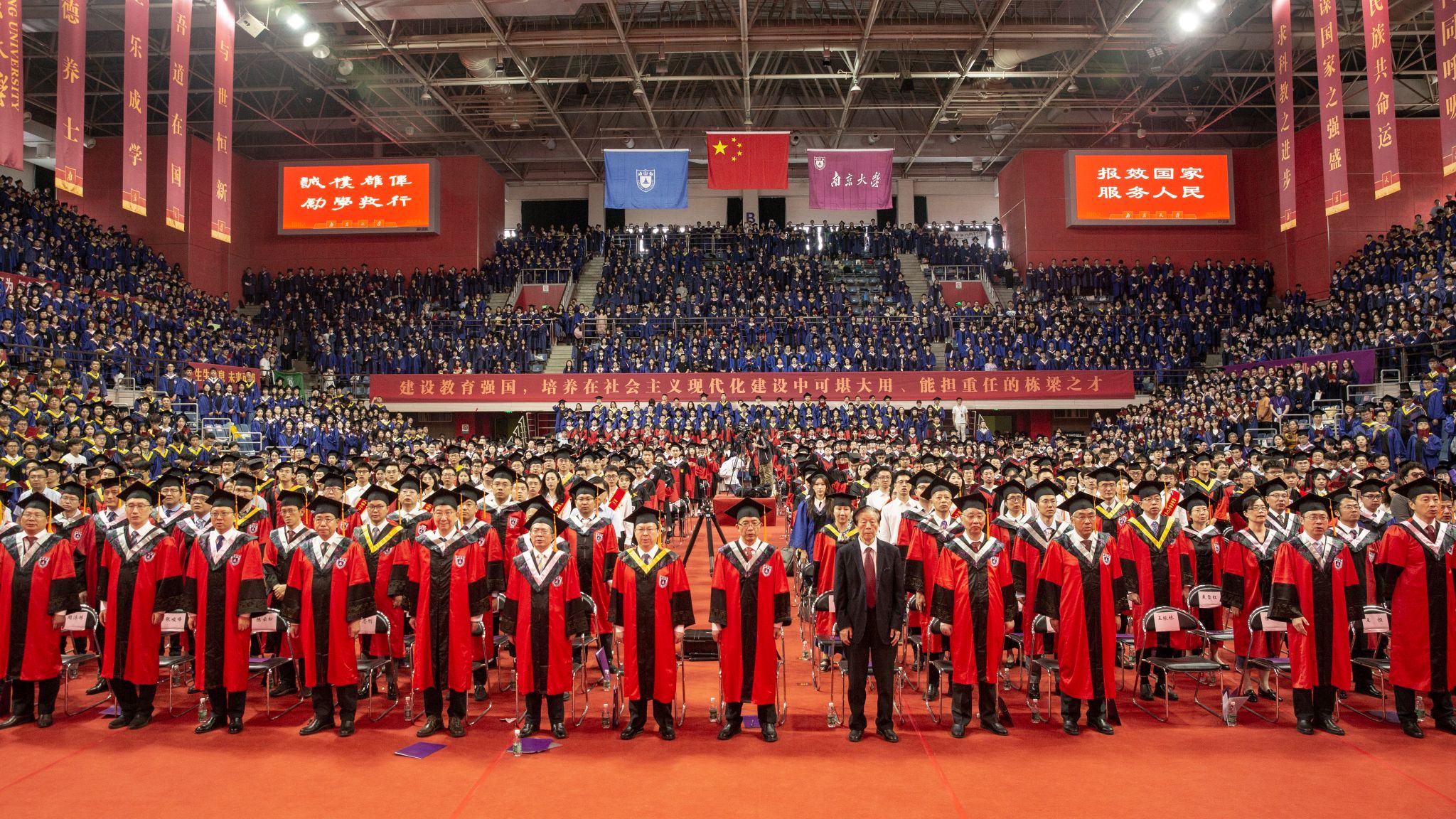 At the beginning of the ceremony, the NJU’s National Flag Escort Team solemnly carried the five-star red flag into the venue.
