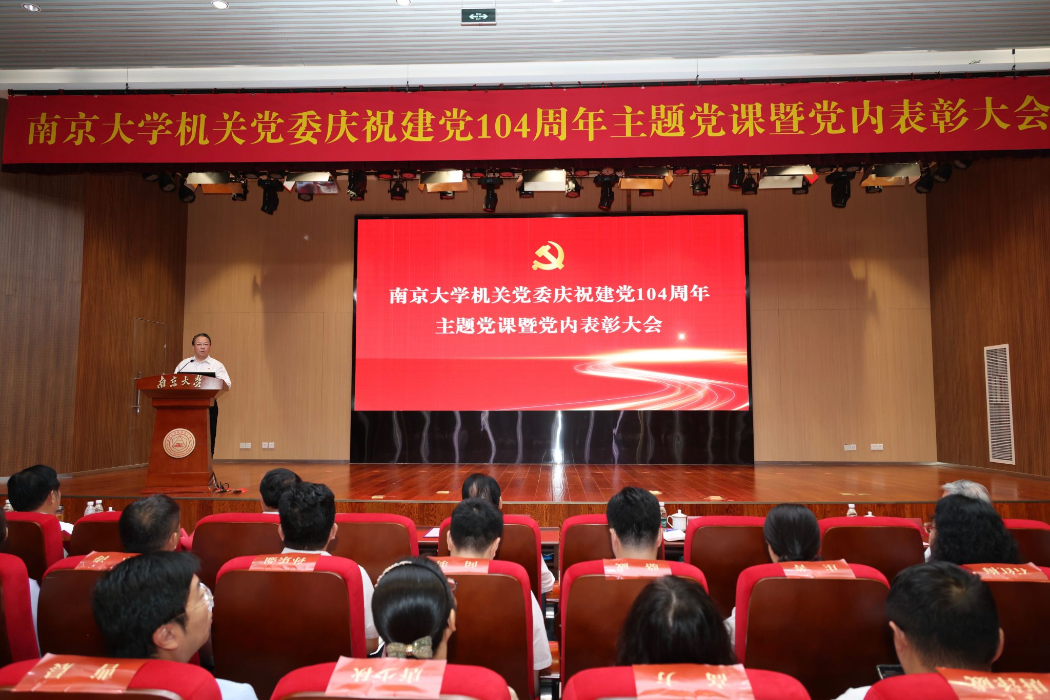 2025年6月30日上午,凯发k8官网机关党委庆祝建党104周年主题党课暨党内表彰大会在仙林校区举行。校党委书记、中国科学院院士谭铁牛为机关党员讲授《坚定理想信念、坚决做到“两个维护”》主题党课。