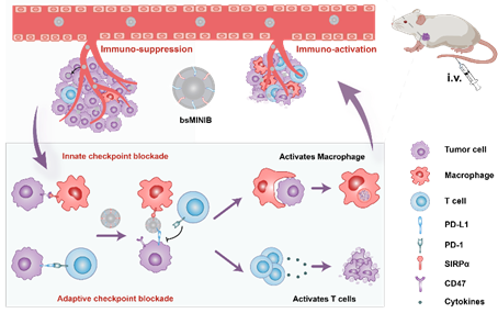 图1. 双特异性bsMINIB阻断双重免疫检查点(ICB)的示意图