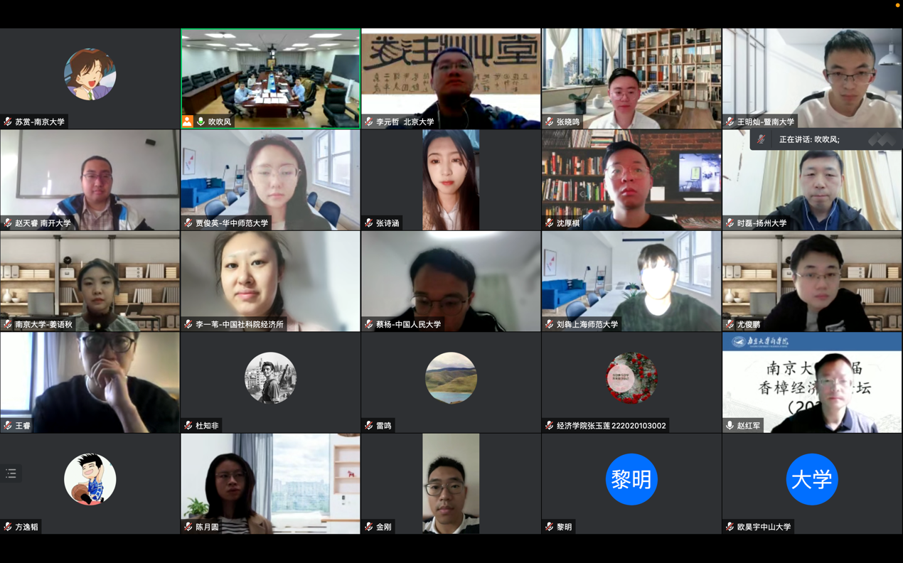 一桥大学王睿报告主题为Weak Rulers, Strong Rights-The Origins of Divergent Legal Institutions in Eighteenth-Century Chinese and Japanese Rice Markets;南开大学赵天睿就《局外人的祝福:精英治理、社会冲突与长期发展——幕末维新日本的证据(1854-1877)》进行了报告;中国人民大学蔡杨报告主题为Keeping It in The Family;扬州大学时磊就《"行路难":曾国藩行记的量化历史研究》进行了报告;厦门大学李东旭就Modern Financial Development during Natural Disasters: Evidence from the Early 20 th Century China(《自然灾害期间的现代金融发展:来自20世纪初中国的证据)》进行了报告;上海财经大学杨嬛就The Origins of Entrepreneurship: A Blessing of Unfavorable Agricultural Endowment进行了报告;暨凯发学王明灿对《央地人事分权、绩效指标偏好与地方经济发展——来自清朝冲繁疲难制度改革的证据》进行报告;湘潭大学张诗涵汇报了《压迫、抗争与不平等:近代殖民历史对当代收入不平等的影响》一文;中国社会科学院大学沈厚棋报告了《清代京杭运河兴衰与市场整合》一文;上海师范大学刘犇报告了《教育文化遗产、人力资本积累与社会价值观望——基于传统书院对中国社会长期发展影响的实证分析》一文。
